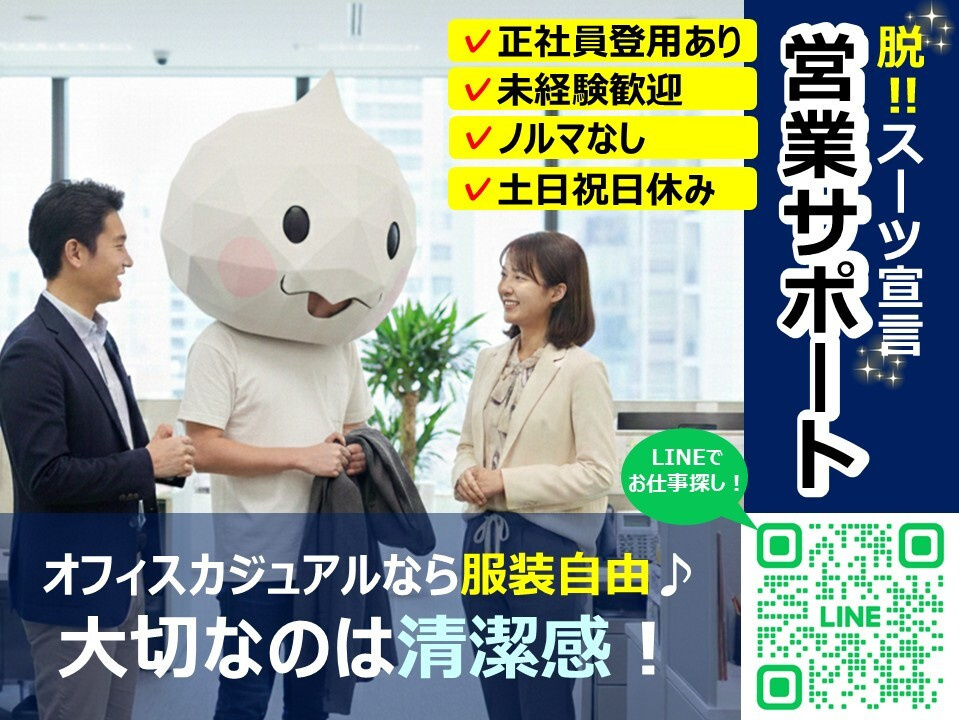 | 仕事内容 | スタッフさんの気になる企業の見学の同行や派遣初日のスタッフさんと一緒に企業へ向かうなどの登録スタッフさんに寄り添うお仕事になります! ・スタッフさんへのお仕事の紹介 ・スタッフさんからの問い合わせ対応 ・担当営業不在時の対応(電話・メール)